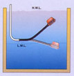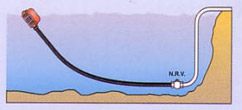 If there is a large rise and fall of the water level, and particularly if the length of hose is restricted, the fixed end of the hose should be only a little above the low water level. It does not generally matter if the strainer is completely submerged at high level.