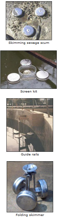 The Sigma Skimmer has three fixed special profile floats designed to direct a controlled flow to the circular intake weir. The weir is provided with a simple, central height adjustment enabling the skimmer to be set for optimum efficiency with varying depths of surface oil or effluent.